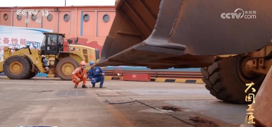 這臺(tái)自重30多噸的大型裝載機(jī),輪胎有一人多高。在清艙作業(yè)時(shí),郭凱的視線被鏟斗擋住了,鏟斗和離艙壁的距離,只能靠手感和經(jīng)驗(yàn)來(lái)判斷。而郭凱把裝載機(jī)鏟斗和艙壁的距離精確地控制在了1毫米。如果距離大于1毫米,壁上的礦石就難以刮干凈;小于1毫米,就會(huì)刮到艙壁。剎車、油門(mén)、落大臂、起翻斗,郭凱一連貫動(dòng)作行云流水、人車合一。