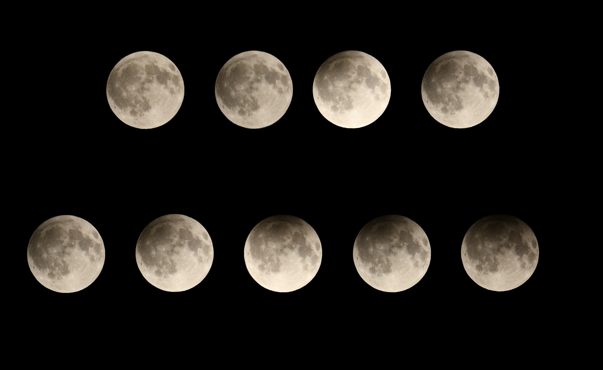 5月5日,2023年首場(chǎng)月食登場(chǎng),這是一次半影月食,月亮的“臉色”從亮變暗,再?gòu)陌底兞粒覈?guó)可見(jiàn)全過(guò)程(拼版照片)。視覺(jué)中國(guó)