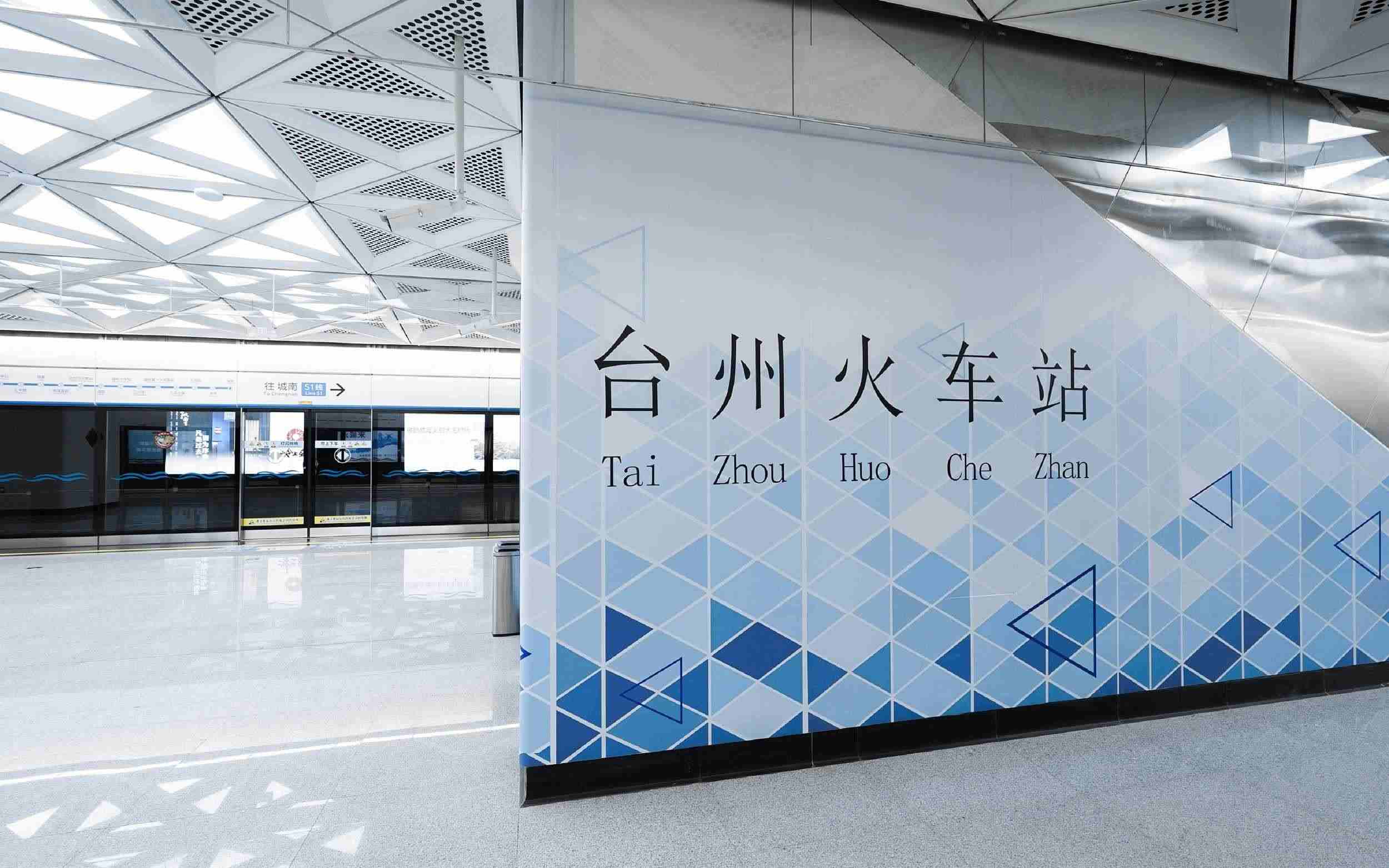 浙江臺州軌道交通S1線火車站站,站名為拼音站名。 視覺中國 圖