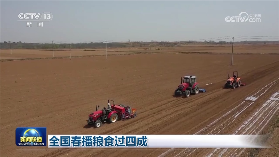 央視網(wǎng)消息(新聞聯(lián)播):眼下,全國春播糧食過四成,各地推進農(nóng)機農(nóng)藝融合,加大良種推廣力度,全力以赴保證播種質(zhì)量。