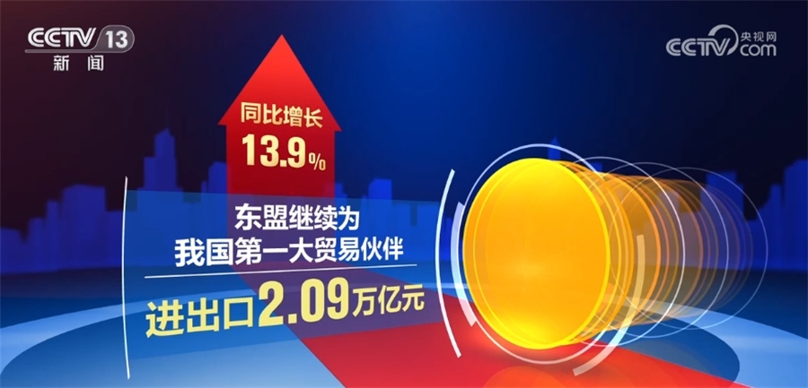同期,東盟繼續(xù)為我國第一大貿(mào)易伙伴,對東盟進出口2.09萬億元,同比增長13.9%,占我國外貿(mào)總值的15.7%;對歐盟進出口1.8萬億元,同比增長4.2%,增速較一季度加快2.2個百分點。