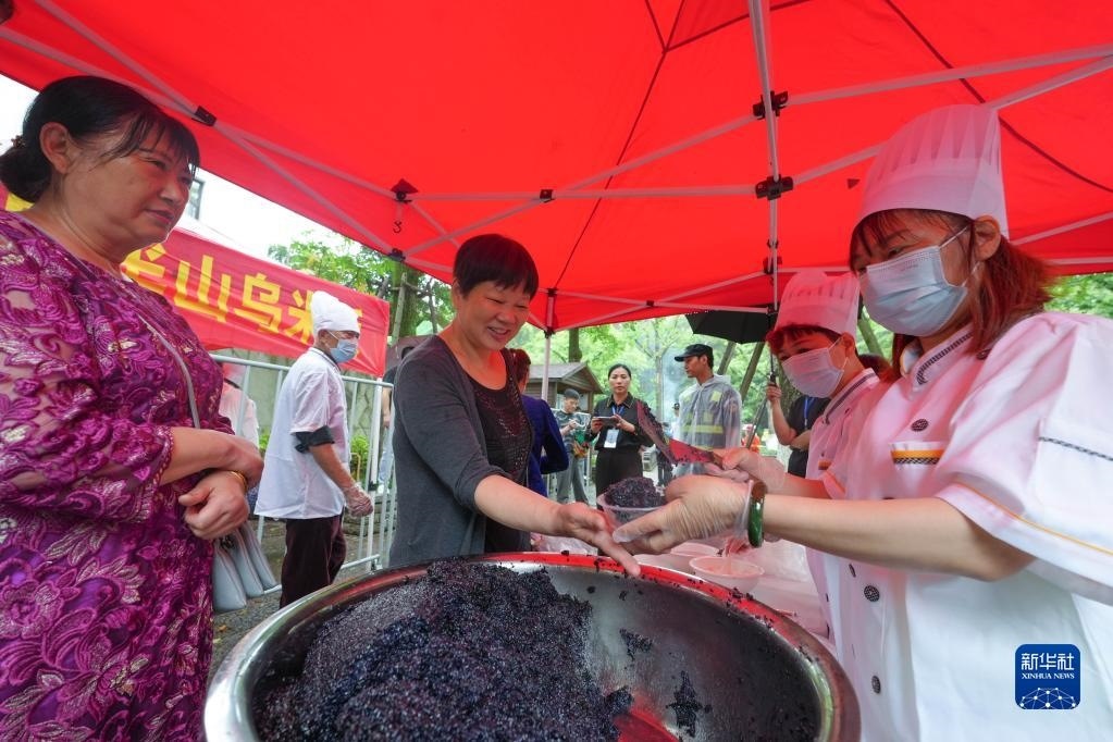 5月6日,游客在活動(dòng)現(xiàn)場(chǎng)品嘗烏米飯。