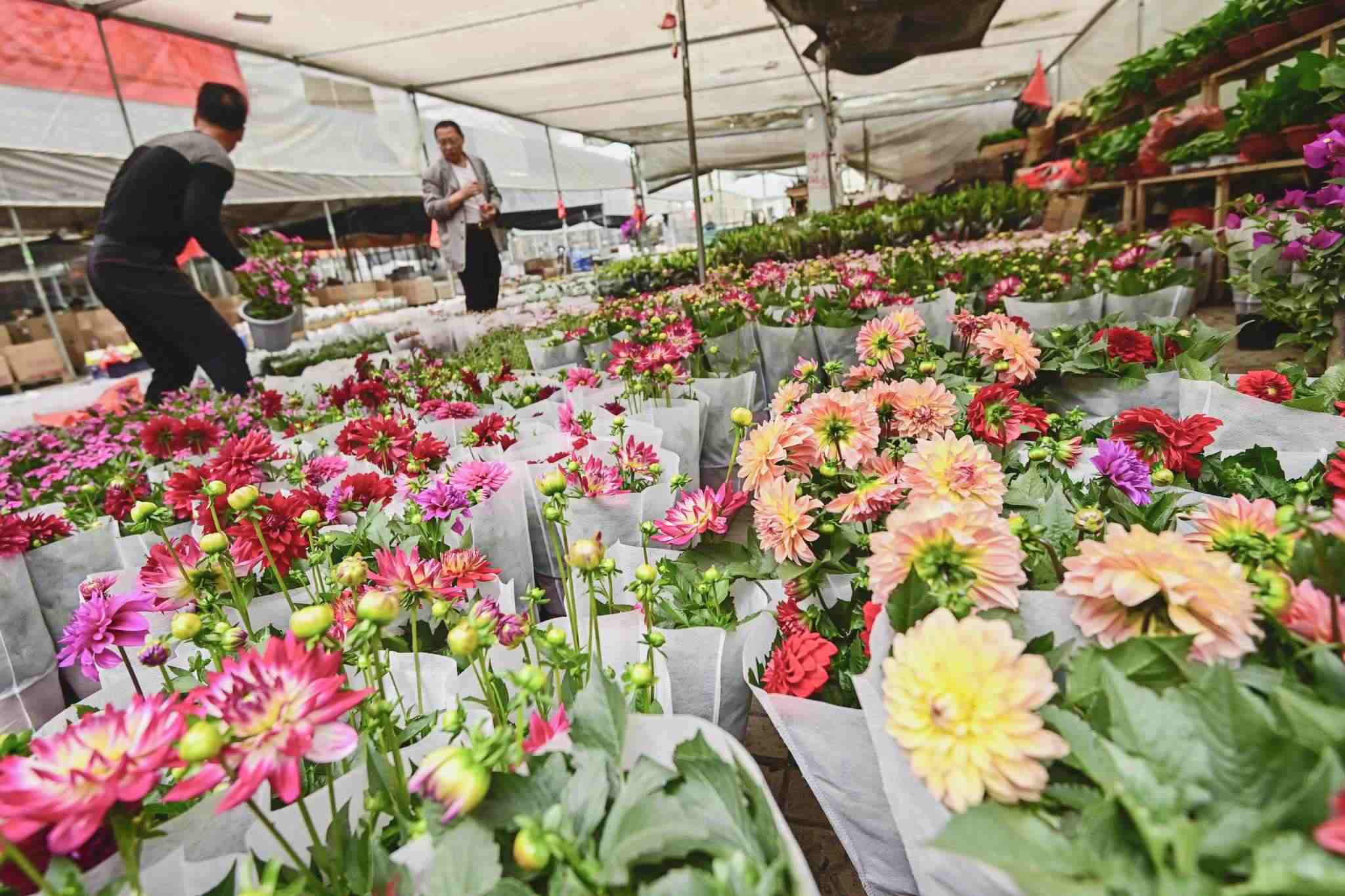 山東濰坊:母親節(jié)臨近 花卉市場生意紅火