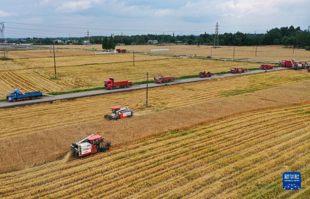 目前,四川省各地農(nóng)民搶抓農(nóng)時,進(jìn)行夏收、夏種、夏管等作業(yè)。   新華社記者 沈伯韓 攝