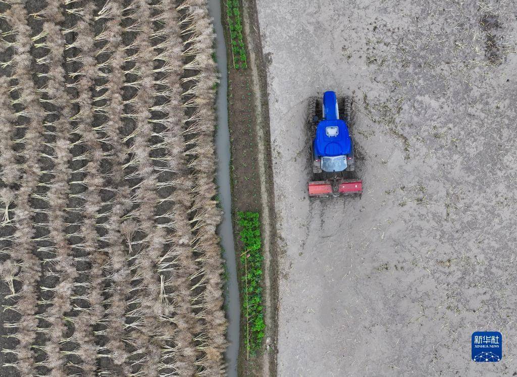 5月9日,四川省邛崍市桑園鎮(zhèn)農(nóng)民駕駛拖拉機(jī)進(jìn)行打漿作業(yè)。   新華社記者 沈伯韓 攝