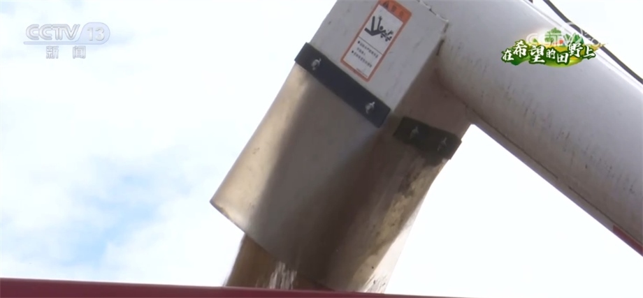 總臺(tái)記者 趙雄:歡迎大家跟隨我們的鏡頭一起走進(jìn)成都平原,來(lái)感受豐收的喜悅。我現(xiàn)在所在的位置是四川邛崍市的萬(wàn)畝糧油示范基地。在我身后,200多畝成片的小麥已經(jīng)成熟,放眼望去,金黃的麥穗在風(fēng)中搖曳,麥浪翻滾煞是喜人。在麥田上,我們可以看到多臺(tái)大型收割機(jī)來(lái)回穿梭作業(yè),一簇簇麥穗被卷入收割機(jī)倉(cāng),收割、脫粒、除雜一氣呵成,金色麥粒傾瀉入倉(cāng)。