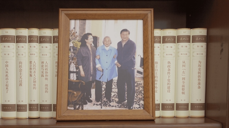2023年新年前夕,習(xí)近平以國家主席身份第10次發(fā)表新年賀詞。電視畫面中,習(xí)近平的辦公室里擺放著這樣一幅照片:他與夫人彭麗媛一左一右,攙扶著母親齊心,母子二人的手緊緊握在一起。