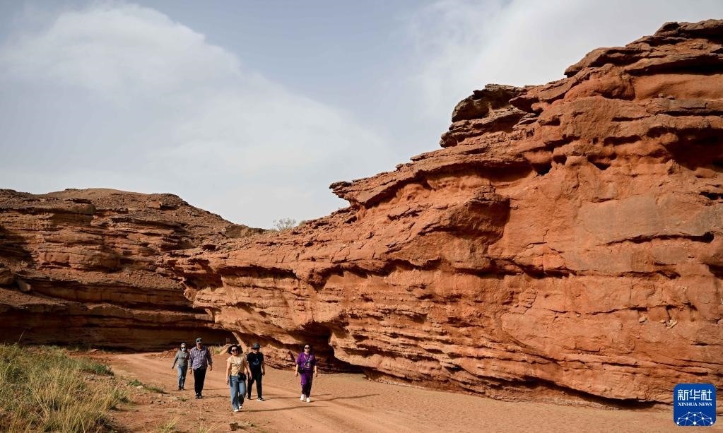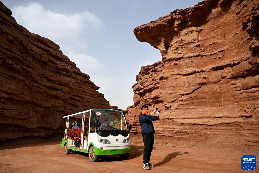 5月13日,游客在內(nèi)蒙古阿拉善盟阿拉善左旗西部夢(mèng)幻峽谷景區(qū)參觀游玩。