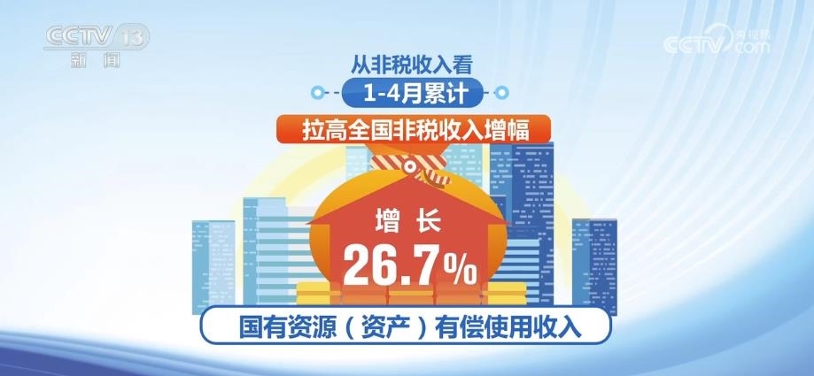 從非稅收入看,1月—4月累計,全國非稅收入同比增長6.8%。其中,國有資源(資產)有償使用收入增長26.7%,拉高了全國非稅收入增幅。全國行政事業(yè)性收費收入和罰沒收入分別下降13.3%和18.7%。