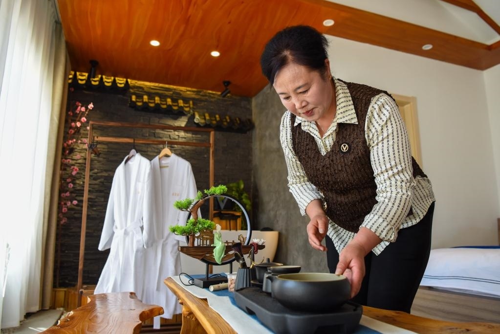 “當了一輩子農(nóng)民,沒想過從土地之外還能賺上錢?!睏钣裉m坦言,起初她并不熱心于張羅民宿生意,但2021年開始,村里游客漸增,趕上夏季旅游旺季,大量游客前往民宿消費,為她帶來每年約5萬元旅游收入。眼下,桃花村已打造22家主題民宿庭院,帶動本地就業(yè)40多人,全村人均年增收2000元。