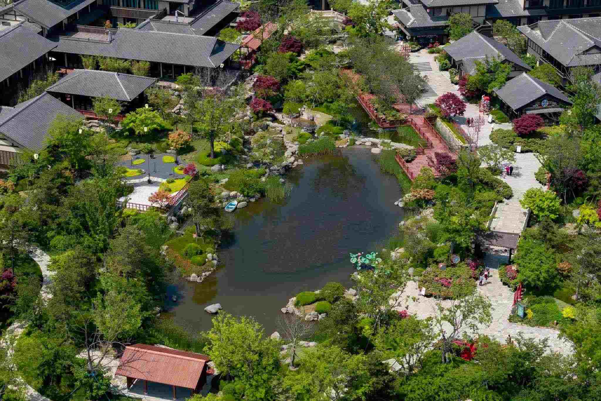2023年5月19日,青島,西海岸新區(qū)藏馬鎮(zhèn),鑲嵌在藏馬山山麓的網(wǎng)紅“打卡地”阿朵花嶼美不勝收。漫步在這個唐風(fēng)古鎮(zhèn)中,繽紛花色點綴在建筑之間,好似畫中景色,讓人流連沉醉。視覺中國