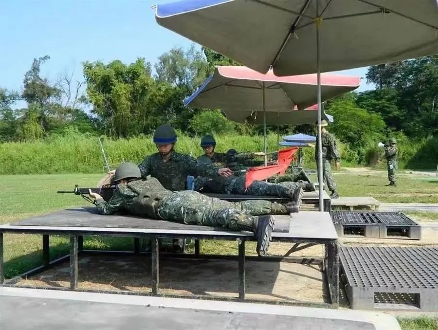 臺兵在太陽傘下訓(xùn)練射擊被臺媒諷刺為“草莓兵”