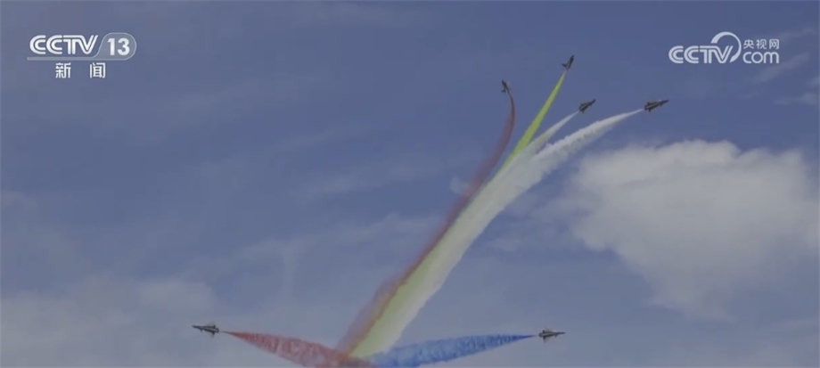 空軍八一飛行表演隊(duì)隊(duì)長 李斌:今天由于受天氣的影響,我們用了4套方案中的第2套方案,一共17個(gè)動(dòng)作,適應(yīng)性訓(xùn)練達(dá)到了我們初步的設(shè)想和訓(xùn)練的目的。其中,隊(duì)員和我們飛機(jī)都很給力,今天天氣也很給力,總體來說今天的訓(xùn)練達(dá)到了我們預(yù)期的目的。
