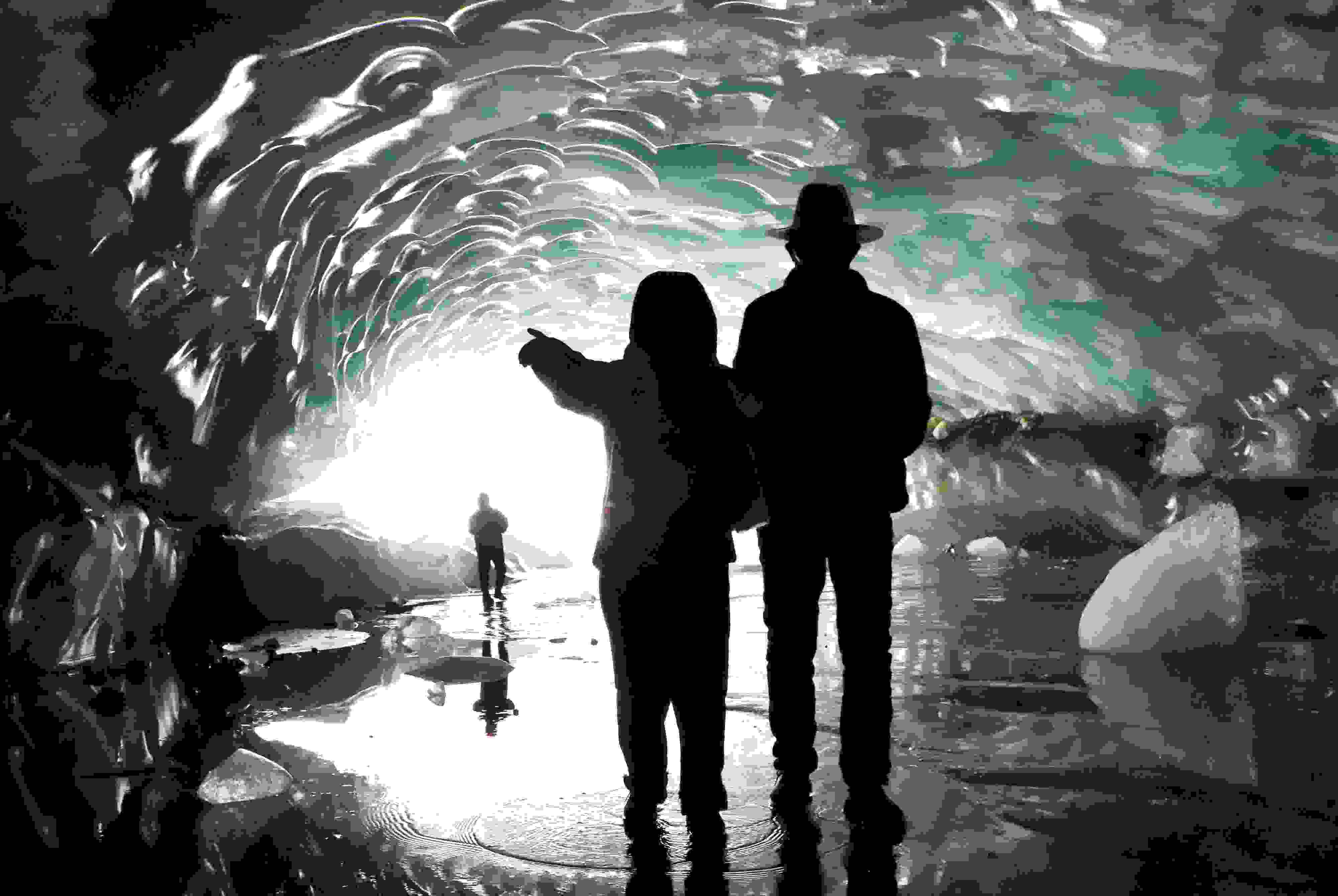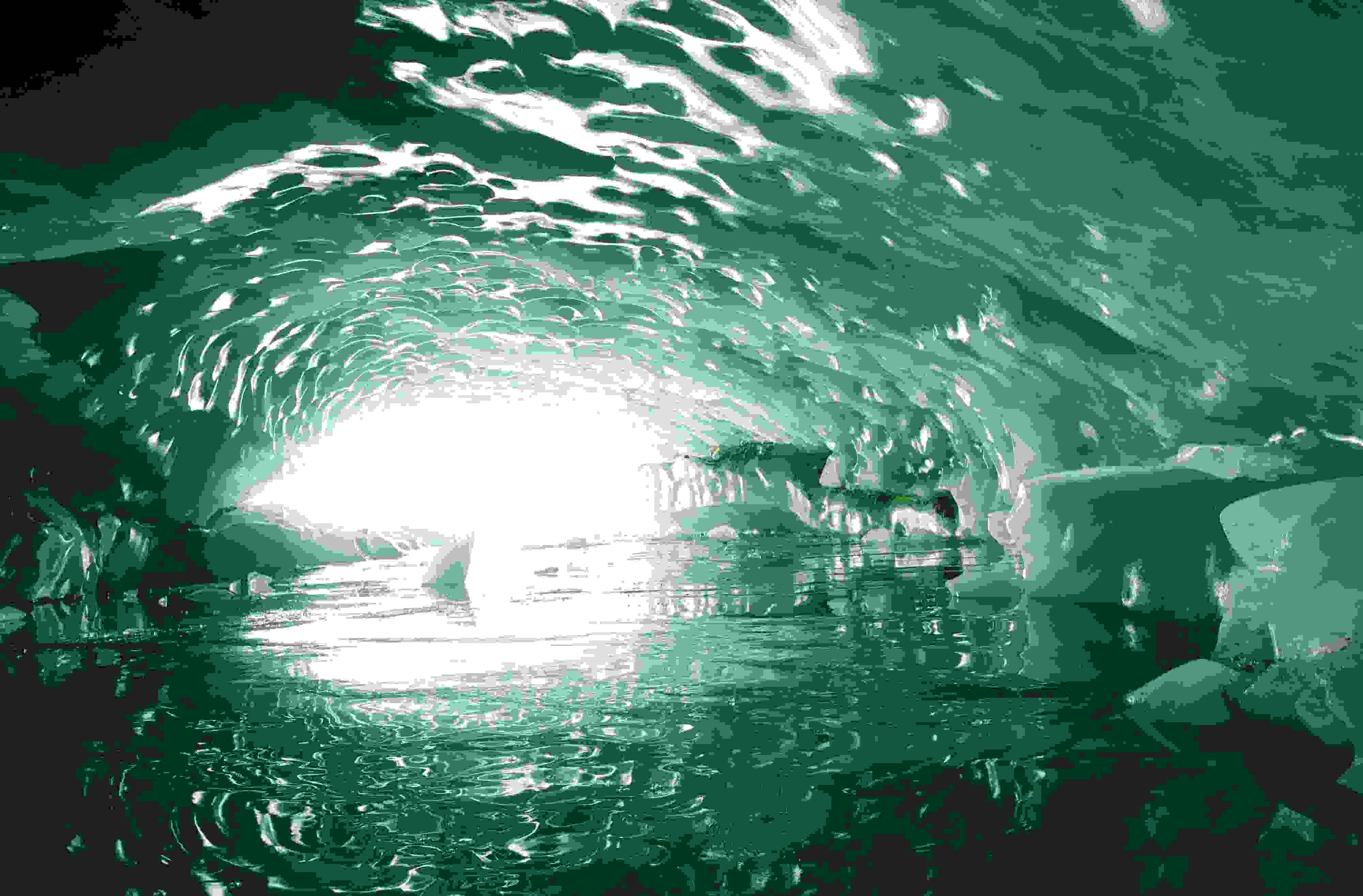 2023年5月21日,西藏昌都,游客在邊壩縣普玉一村游覽冰洞。據(jù)初步勘測,貫穿的冰洞長約165米、寬約26米、高約15米。呈弧拱造型的冰洞內(nèi)壁上皆是晶瑩剔透的冰柱、冰簾、冰花,其頂部呈“魚鱗”狀,在陽光的照射下,呈現(xiàn)出夢幻般的景象。 視覺中國