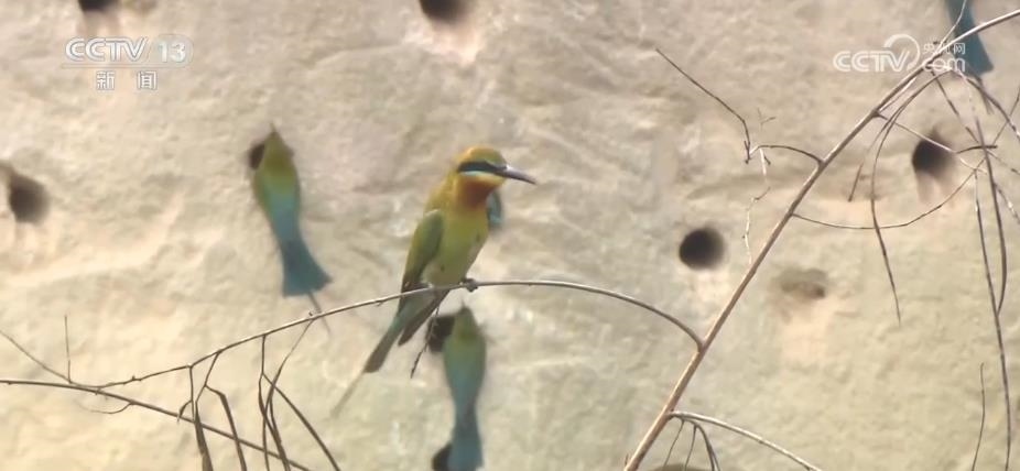 眼前,這些看上去很像是泥巴墻的建筑,其實是人工建造的候鳥巢穴。根據(jù)栗喉蜂虎的生活習(xí)慣,保護區(qū)工作人員專門在它們回來之前就對懸壁進行修整,讓這些美麗的小鳥更方便安家。