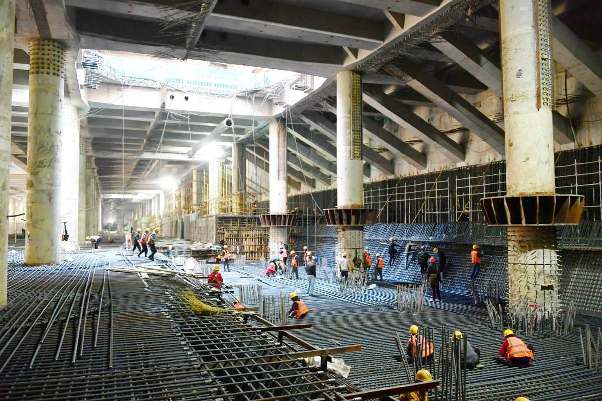 北京城市副中心站綜合交通樞紐已逐漸顯露出地下城般的壯觀。常鳴 攝
