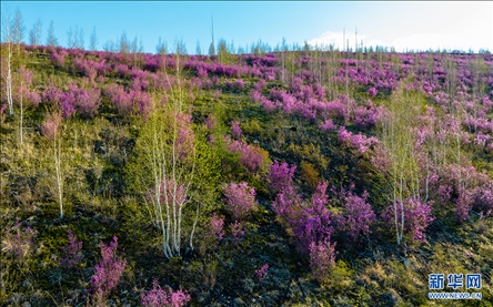 5月22日,內蒙古大興安嶺北部“杜鵑花谷”杜鵑花綻放。新華網(wǎng)發(fā)(李明 攝)