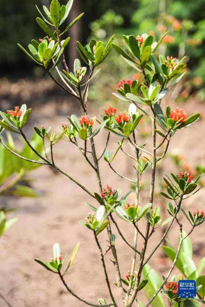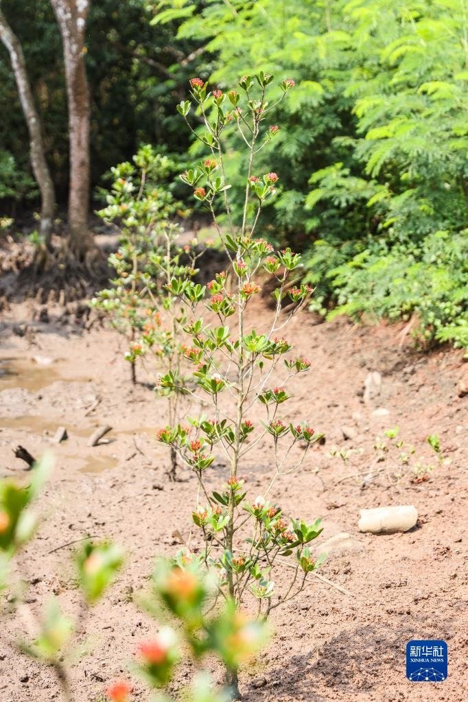 近日,在海南東寨港國家級(jí)自然保護(hù)區(qū)里的瀕危紅樹植物紅欖李迎來花期。據(jù)悉,紅欖李是珍稀瀕危紅樹植物、國家一級(jí)保護(hù)植物,被譽(yù)為紅樹林中的“大熊貓”。國內(nèi)一度僅存14株。2014年,海南東寨港國家級(jí)自然保護(hù)區(qū)管理局成功培育出紅欖李幼苗,并建立紅欖李野外種植基地。如今這里已有超過20畝、約2300株的紅欖李。