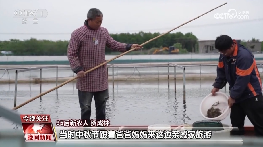 賀成林父親 賀國文:開始的時候是沒有支持他/他養(yǎng)蟹是比較非常辛苦的,平時要住在下塘邊上,半夜也要起來巡邏,風(fēng)吹日曬的看到他在養(yǎng)蟹的過程當(dāng)中一直在學(xué)習(xí),我能感受得到他能吃苦不怕困難的這種精神,才同意他。