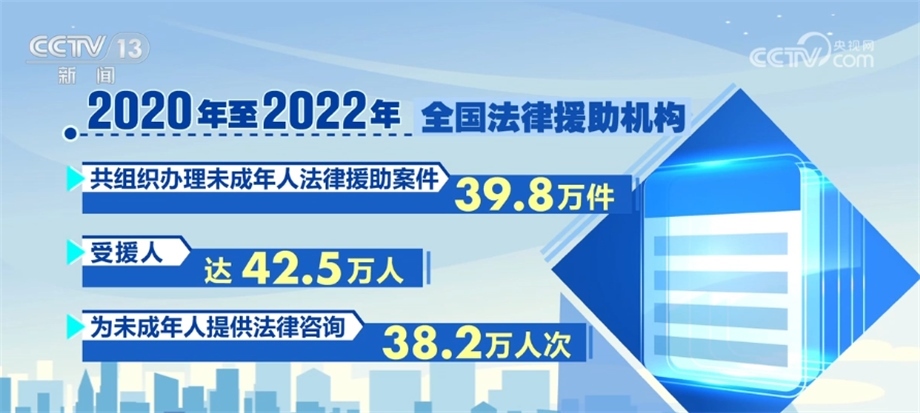 司法部相關(guān)負(fù)責(zé)人在發(fā)布會(huì)上介紹,2020年,司法部印發(fā)《未成年人法律援助服務(wù)指引(試行)》,以專章形式規(guī)范了辦理性侵害未成年人法律援助案件的工作程序和服務(wù)標(biāo)準(zhǔn)。據(jù)統(tǒng)計(jì),2020年至2022年,全國法律援助機(jī)構(gòu)共組織辦理未成年人法律援助案件39.8萬件,受援人達(dá)42.5萬人,為未成年人提供法律咨詢38.2萬人次。