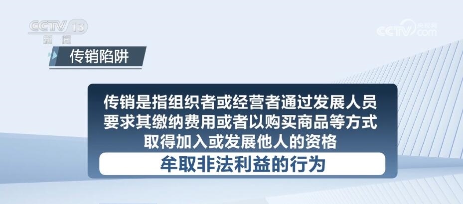 傳銷是指組織者或經(jīng)營者通過發(fā)展人員,要求其繳納費(fèi)用或者以購買商品等方式,取得加入或發(fā)展他人的資格,牟取非法利益的行為。