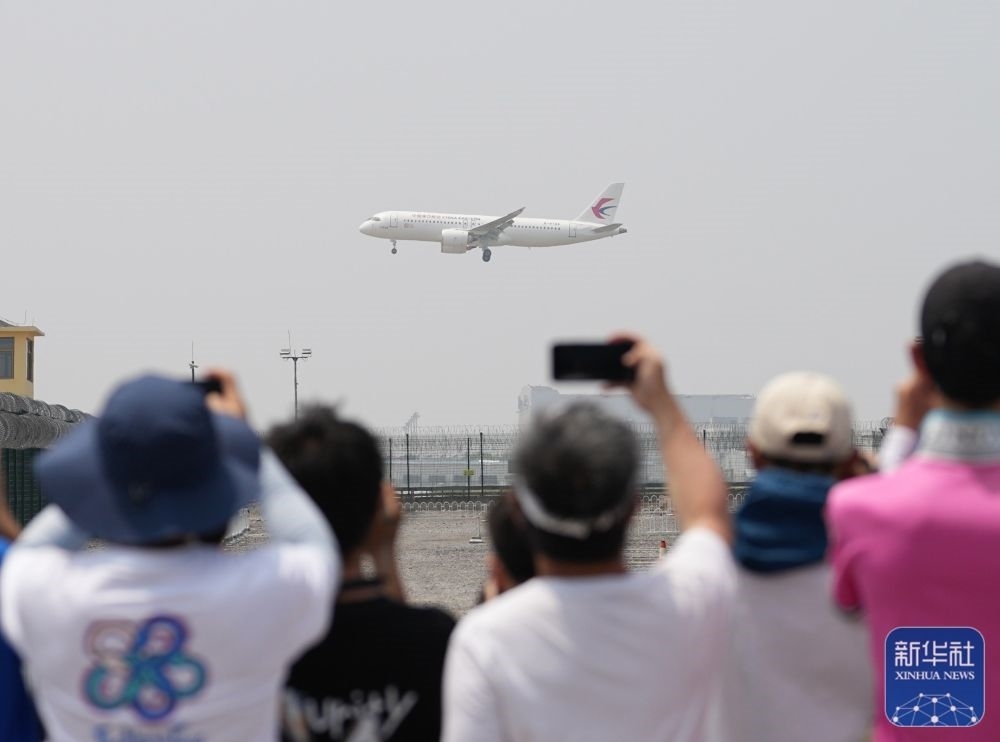 5月28日,C919首個(gè)商業(yè)航班東航MU9191飛抵北京首都國(guó)際機(jī)場(chǎng)。新華社記者鞠煥宗攝