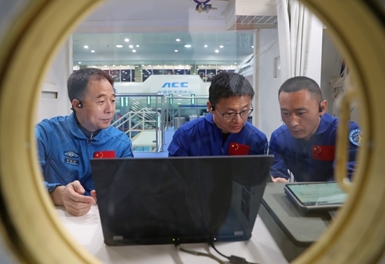 5月8日,神舟十六號乘組在飛船模擬器里。本文圖片均由徐部拍攝