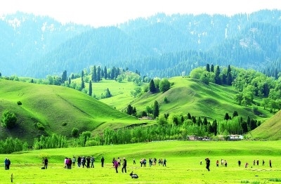 游客在新疆那拉提旅游風(fēng)景區(qū)觀光。 新華社發(fā)
