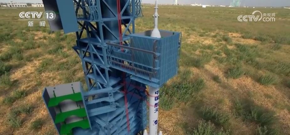 總臺(tái)央視記者 勞春燕:這個(gè)發(fā)射塔架就好像是一個(gè)100多米高的“鋼鐵巨人”。它有一個(gè)學(xué)名叫“臍帶塔”,為什么叫這個(gè)名字?因?yàn)樗芾镉懈鞣N線纜和管路,就像嬰兒的臍帶一樣,可以為火箭和飛船輸送能量與養(yǎng)分。另外,塔架還裝了空調(diào)和保溫層,可以為船箭創(chuàng)造一個(gè)合適的環(huán)境。有了它的全方位保護(hù),火箭適應(yīng)環(huán)境的能力大大提高,即使碰上零下20℃的極寒天氣依然可以正常發(fā)射。