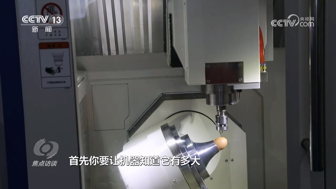 北京中關村精雕智造科技創(chuàng)新中心副總經(jīng)理楊錳:“一個是識別,給機床安上了一雙眼睛,能知道雞蛋長什么樣子;另外一個就是要求機床精度和穩(wěn)定性非常高,保證雞蛋永遠刻不爛、刻不破?!?/p>