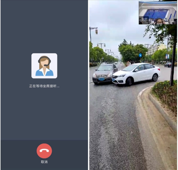 當事人點擊“視頻報警”按鈕后,呼叫等待公安交管部門接警人員接聽,接警人員接聽后進入雙方視頻通話。