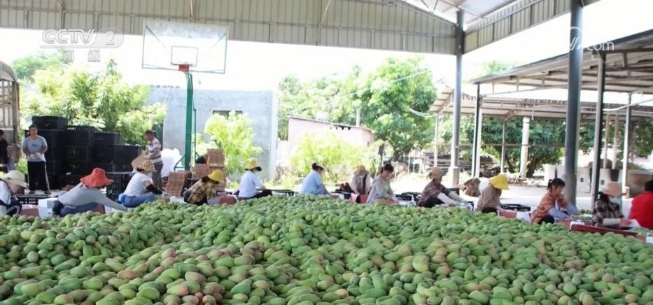 每天早上八點以后,新平縣漠沙鎮(zhèn)曼勒社區(qū)的芒果交易市場開始熱鬧起來。果農(nóng)將芒果運到市場進行售賣,空氣中彌漫著濃濃的芒果香味。在曼線村,收購點的芒果堆成了“小山”,包裝好的芒果整整齊齊地排列在車廂里,即將被運送到全國市場。