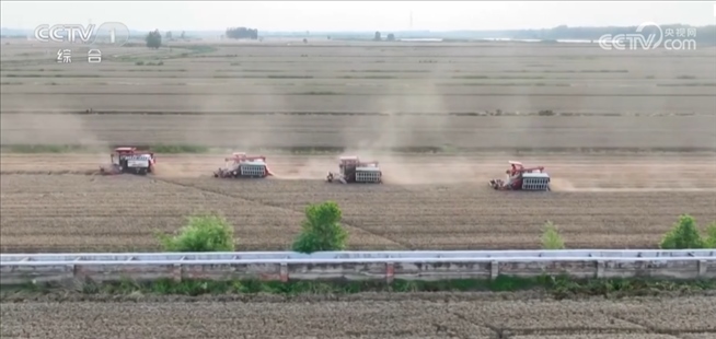 近期遭遇持續(xù)降雨的還有陜西。在渭南市蒲城縣,當(dāng)?shù)爻弥鞖夥徘?,抓緊時機(jī),迅速展開搶收作業(yè)。雨后難以進(jìn)地,履帶式收割機(jī)成為解決問題的利器。今年,陜西渭南冬小麥種植面積達(dá)到446.5萬畝,當(dāng)?shù)負(fù)屪デ绾锰鞖?,組織農(nóng)機(jī)手輪班作業(yè),成熟一畝、搶收一畝,加快夏收進(jìn)度。