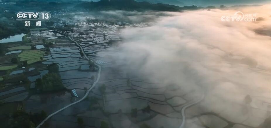 央視網(wǎng)消息:在安徽宣城的旌德縣,這里地處黃山山脈,四面青山環(huán)繞著大片的水田,田埂勾勒出蜿蜒曲折的輪廓。旌德縣現(xiàn)有耕地約12萬畝,其中,像這樣的水田有8萬畝,分布在山區(qū)的多個鄉(xiāng)鎮(zhèn)。最近幾天,趁著有利天氣,村民們正搶種水稻。除了機械插秧,這里還采用拋秧的方式種植,一株株秧苗插進水田,滿眼碧綠、生機勃勃。
