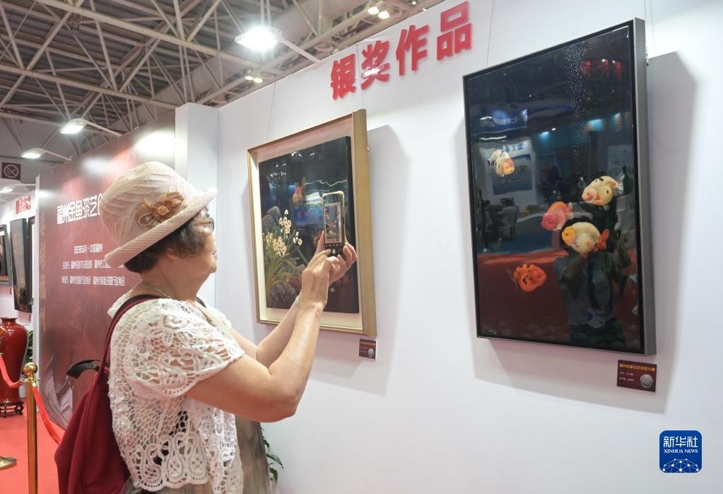 當(dāng)日,第十屆中國(福州)金魚文化節(jié)在福州海峽國際會(huì)展中心舉行,金魚與以金魚為題材的福州傳統(tǒng)漆藝作品同場(chǎng)斗艷,展區(qū)內(nèi)除展示第六屆中國(福州)金魚大賽獲獎(jiǎng)的金魚外,還展示了首屆福州“金魚”漆藝創(chuàng)新大賽的近百件作品。新華社記者 林善傳 攝