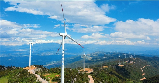 位于鹽源縣棉埡鎮(zhèn)的四川鹽源華電新能源有限公司的涼風坳風電場一角(2022 年 6 月 20 日攝)江宏景攝 / 本刊