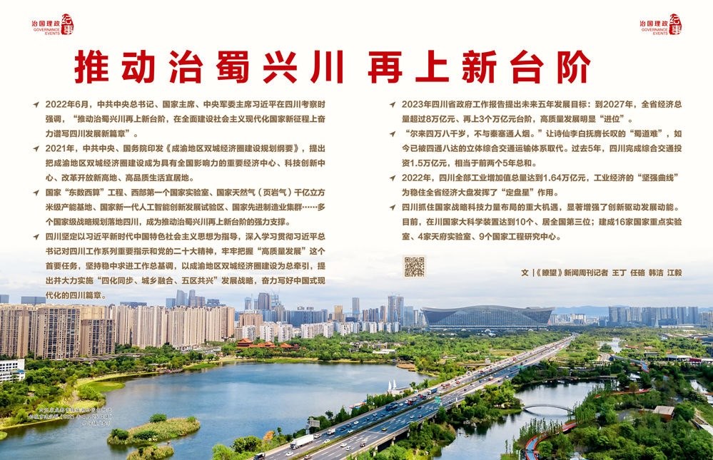 ◇2022年6月,中共中央總書記、國家主席、中央軍委主席習近平在四川考察時強調,“推動治蜀興川再上新臺階,在全面建設社會主義現(xiàn)代化國家新征程上奮力譜寫四川發(fā)展新篇章”。