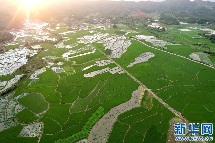 廣昌縣頭陂鎮(zhèn)早稻進入分蘗期,長勢良好。新華網(wǎng)發(fā) 危仁鵬 攝