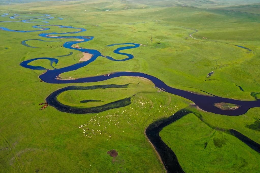 這是位于內(nèi)蒙古呼倫貝爾市陳巴爾虎旗境內(nèi)的莫日格勒河(2021年7月21日攝,無(wú)人機(jī)照片)。新華社記者 連振 攝
