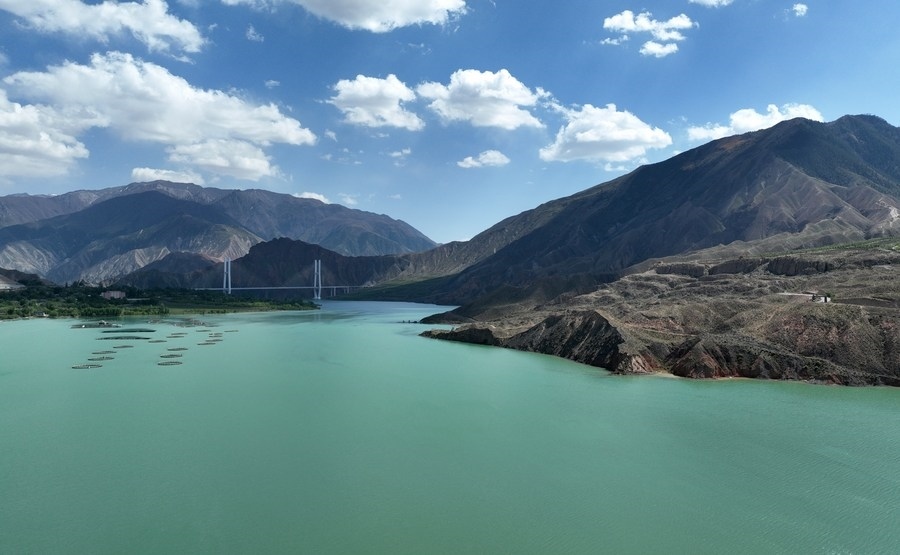 這是5月13日在黃河上游尖扎段拍攝的風(fēng)光(無(wú)人機(jī)照片)。新華社記者 張宏祥 攝