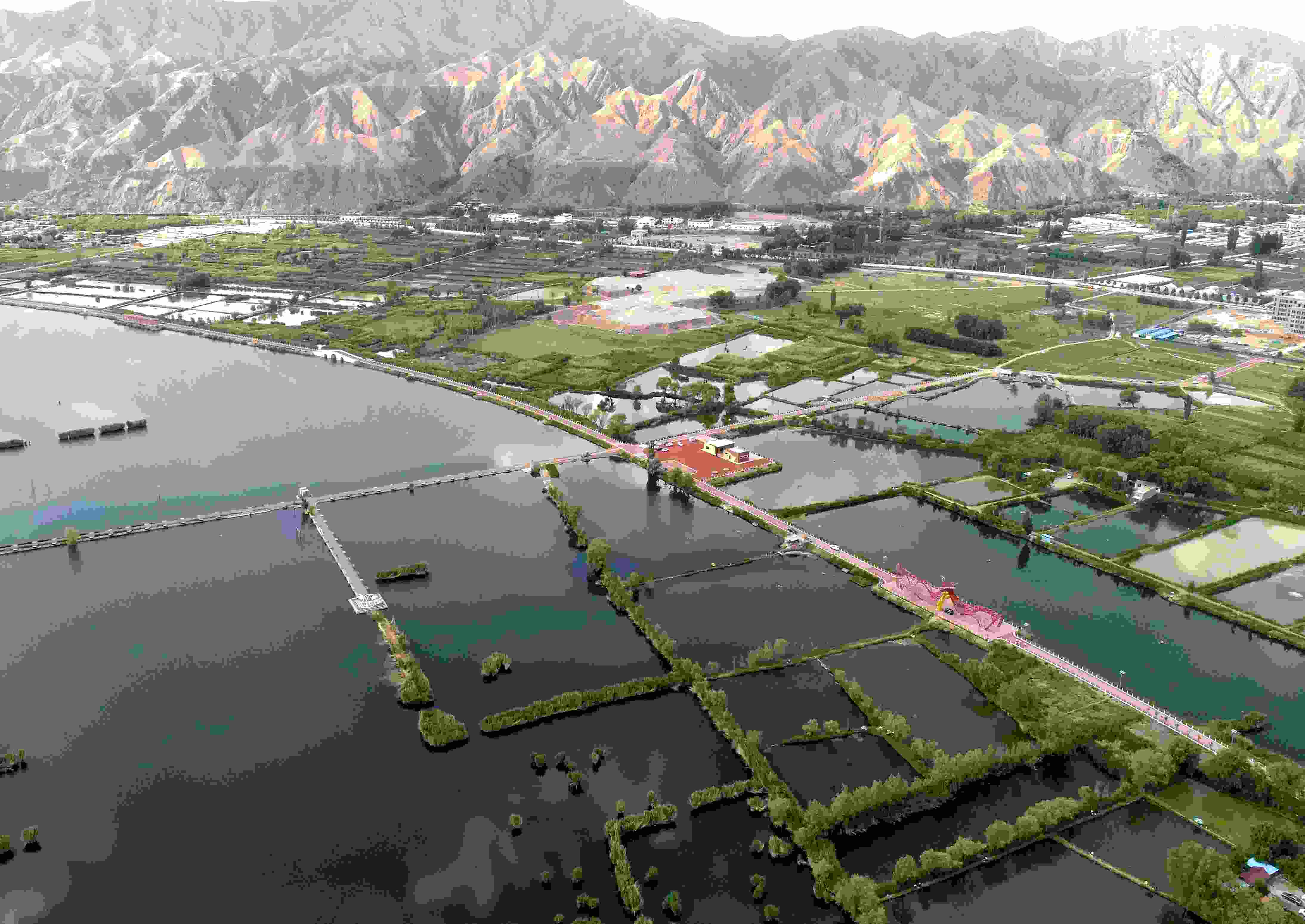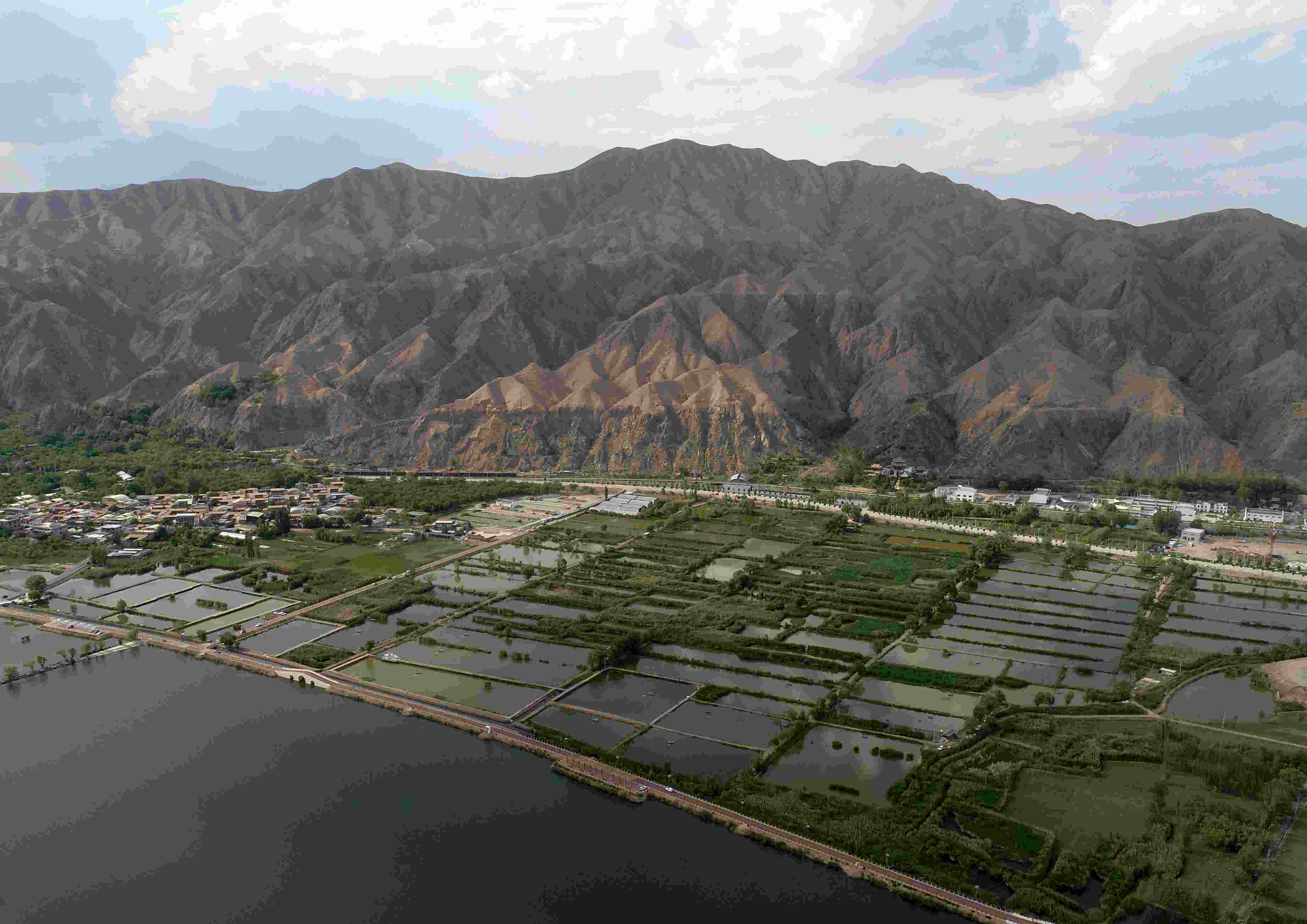 初夏時節(jié),甘肅省永靖縣太極島黃河濕地風(fēng)光秀麗,島上蘆草叢生,綠意盎然,游客乘船在蘆葦蕩里游玩。沿河公路與狹長的黃河交相輝映,星羅棋布的人工魚塘宛如一塊塊玉石鑲嵌在大地上,勾勒出一幅美妙的山水田園畫卷。近年來,永靖縣依托太極島黃河濕地豐富的生態(tài)資源,將文旅產(chǎn)業(yè)與生態(tài)保護(hù)相結(jié)合,進(jìn)一步提升水產(chǎn)養(yǎng)殖、濕地保護(hù)以及休閑旅游功能。