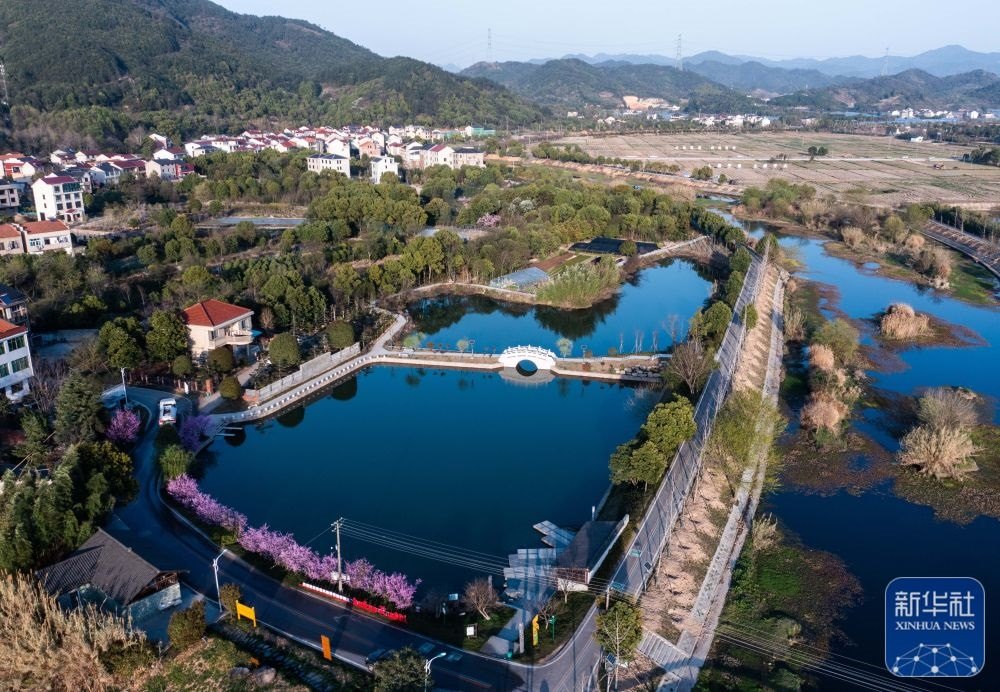 空中俯瞰浙江金華市金東區(qū)嶺下鎮(zhèn)八仙溪及周邊村莊(3月14日攝,無人機(jī)照片)。近年來,嶺下鎮(zhèn)通過“抓源頭、強(qiáng)整治、做項(xiàng)目、重長效”的治理思路,先后關(guān)停八仙溪沿岸多家制砂企業(yè)及養(yǎng)殖場,清理河道垃圾,完成28個(gè)村農(nóng)村生活污水處理工程和51口池塘清淤,2018年以來八仙溪水質(zhì)常年保持在Ⅱ類以上。新華社記者 徐昱 攝