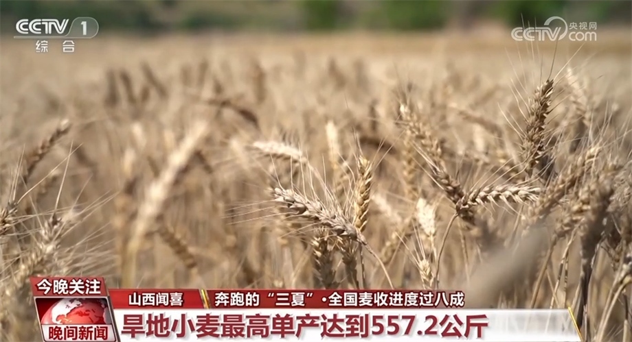 央視網(wǎng)消息:農(nóng)業(yè)農(nóng)村部小麥機收調(diào)度顯示,當(dāng)前全國已收獲冬小麥面積達2.53億畝,進度過八成。與此同時,夏種也正在壓茬推進。