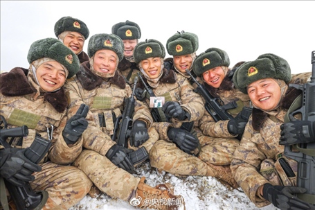 近日,新疆軍區(qū)某合成團官兵在海拔5200米的高原,開展邊境巡邏任務(wù)。皚皚白雪之上,邊防官兵手拉著手前行,臉頰凍得通紅,笑容卻堅定又自豪。