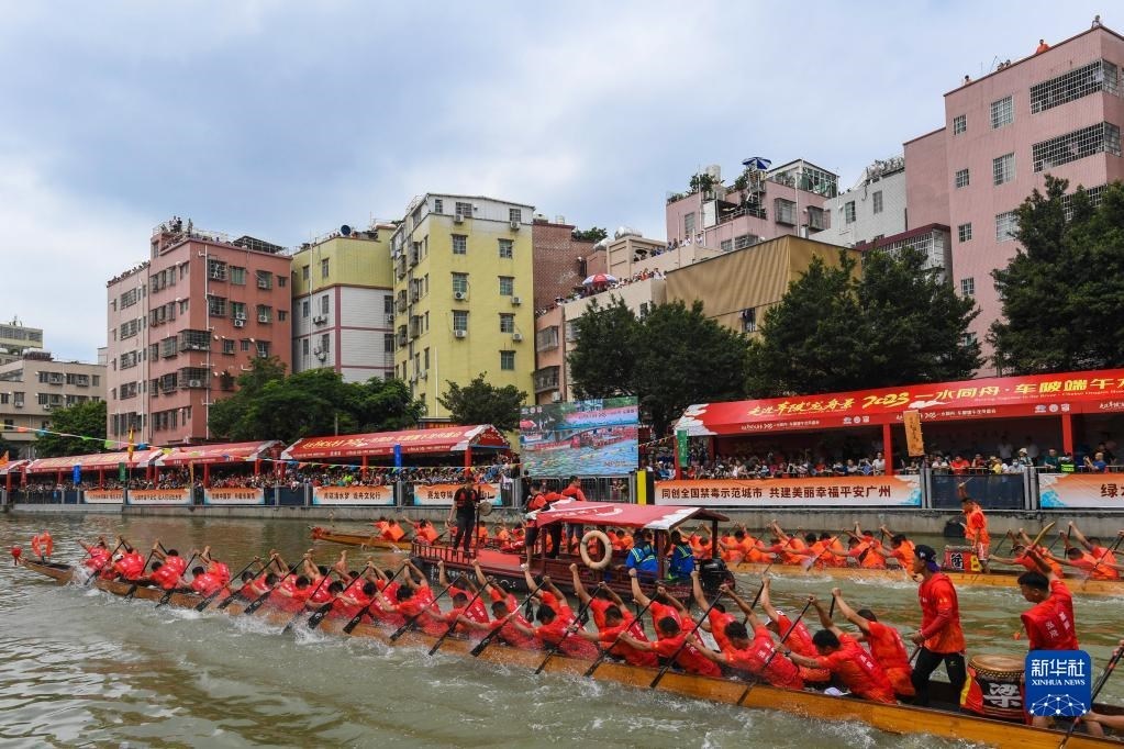 自農(nóng)歷四月初八“起龍舟”開始,廣州地區(qū)就開啟了劃龍舟、迎端午的年度大戲。6月15日,車陂村12條龍船在車陂涌進(jìn)行龍舟競(jìng)渡。
