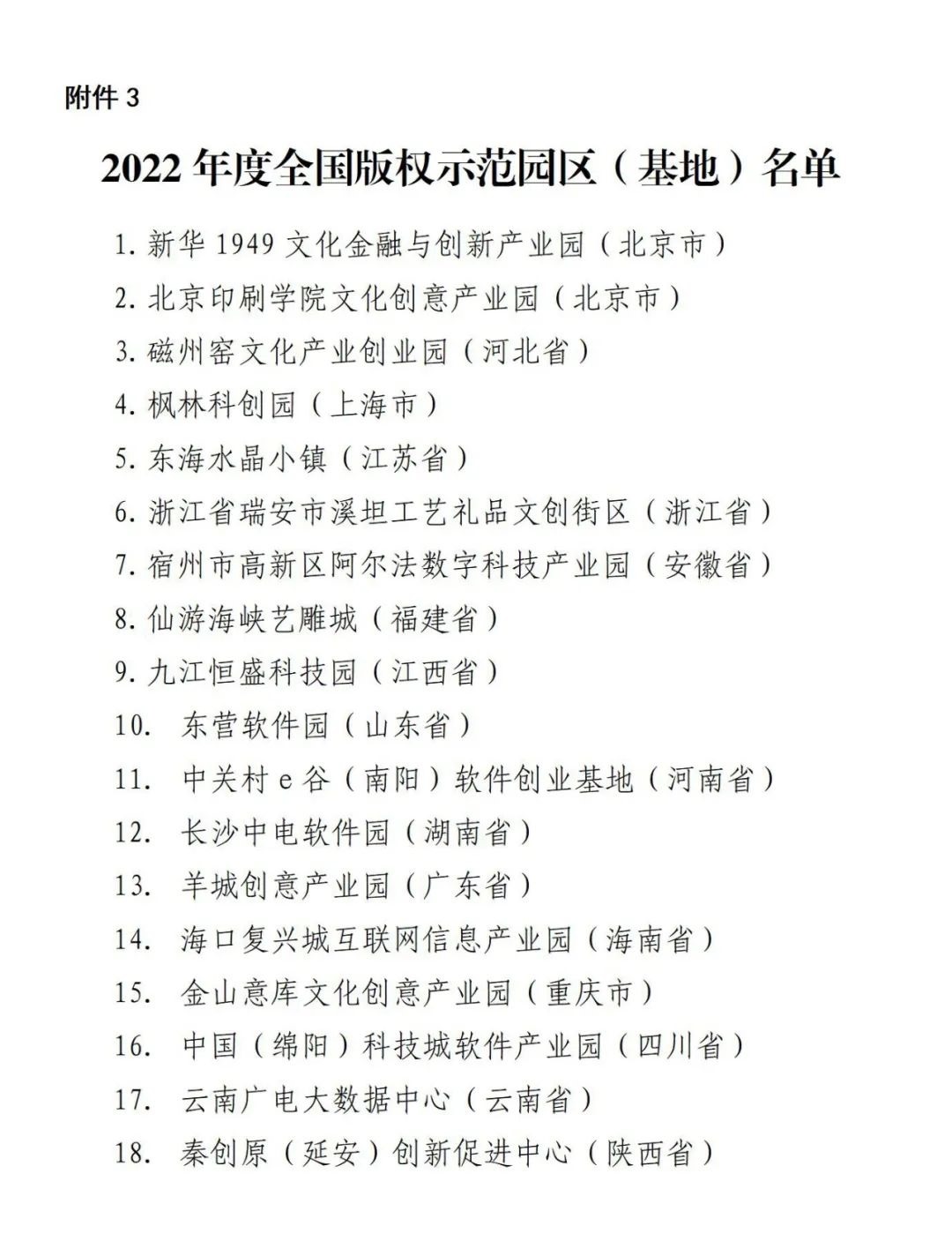 3.2022年度全國版權(quán)示范園區(qū)(基地)名單