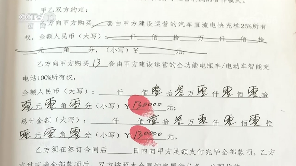 張先生:“我信這個國家政策,也信他說的新能源這個事,但是對它的盈利模式,一天按照8個小時來運作,這個錢算下來1115元,我當時還有一個疑惑,8個小時難道不停地充電?每個充電樁都能產(chǎn)生這么多效益嗎?來錢太快了,來錢快就感覺不大靠譜。”