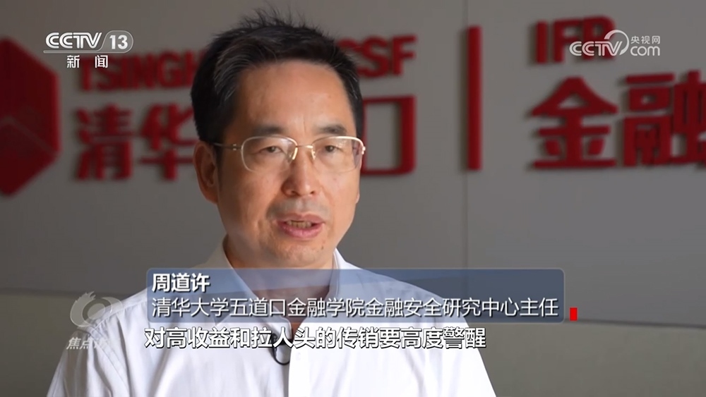 清華大學(xué)五道口金融學(xué)院金融安全研究中心主任周道許:“有兩個明顯的特征,第一個就是高回報、高收益率,誘使人投資他的項目,一般會采取傳銷拉人頭的方式來推銷他的產(chǎn)品。對高收益和拉人頭的傳銷要高度警醒,同時要借助專業(yè)的力量,頭腦一發(fā)熱錢就砸進去了,后悔就太晚了?!?/p>