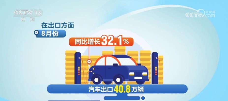 在出口方面,8月份,汽車出口40.8萬輛,同比增長32.1%。1月—8月,汽車出口294.1萬輛,同比增長61.9%。從汽車市場的整體表現(xiàn)來看,1月份—8月份,我國汽車產(chǎn)銷量分別完成1822.5萬輛和1821萬輛,同比分別增長7.4%和8%。
