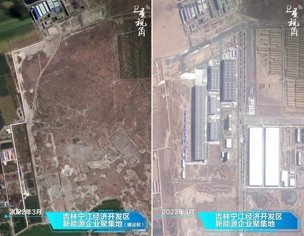 ↑2023年與2022年相比,吉林寧江經(jīng)濟(jì)開(kāi)發(fā)區(qū)的一片空地建設(shè)成頗具規(guī)模的新能源企業(yè)聚集地。